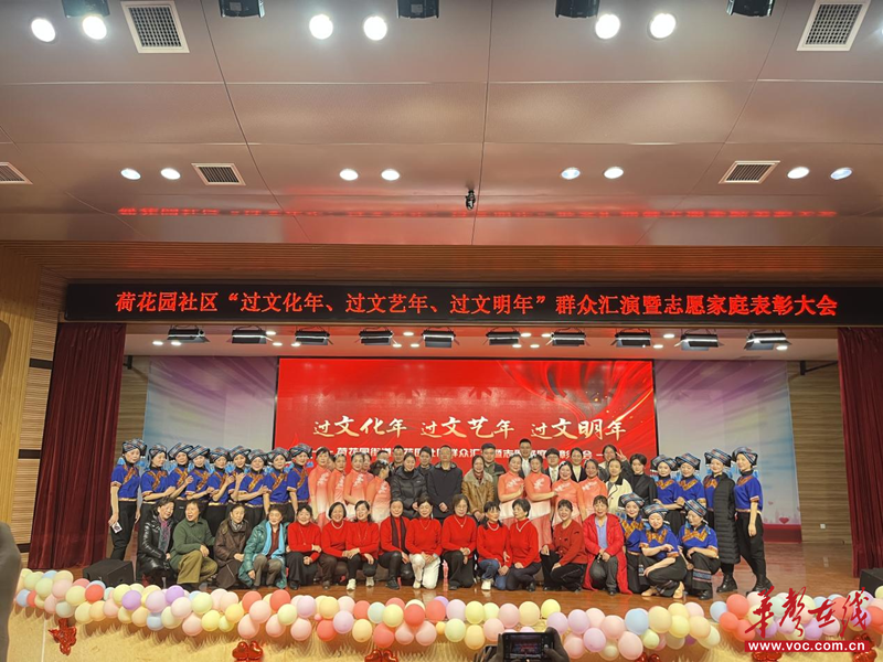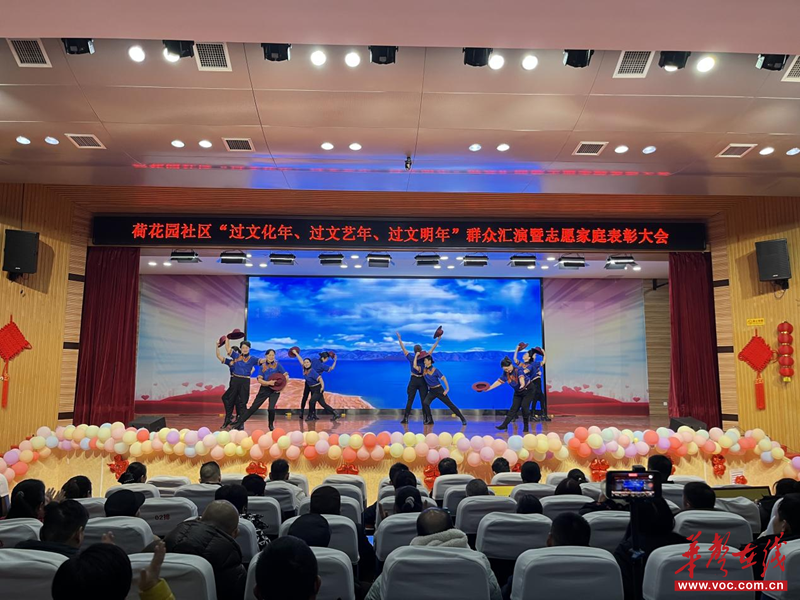 华声在线2月6日讯(通讯员 陈意 谢裕枝)2月6日上午,长沙市芙蓉区荷花园街道荷花园社区联合长沙市芙蓉区齐家社会工作服务中心、长郡芙蓉中学开展“过文化年、过文艺年、过文明年”群众文艺汇演暨志愿家庭表彰活动,荷花园街道党工委副书记周乘宇等领导出席,辖区受表彰代表、企业退休人员、居民群众及各协办单位、艺术团、社区工作人员齐聚一堂,共赏文艺盛宴、共贺新春、共话发展,凝聚共建共治共享合力。