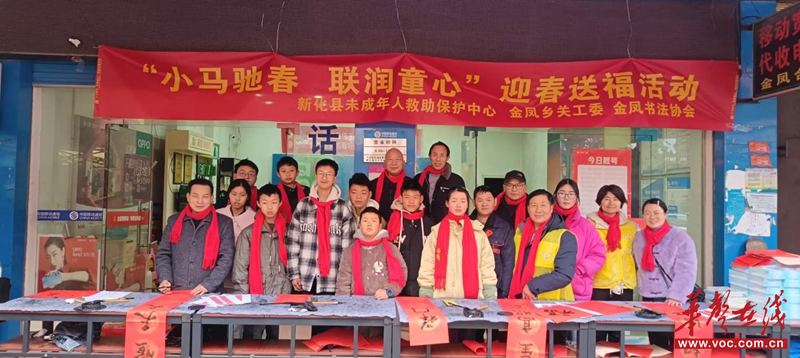 华声在线2月11日讯(通讯员 刘会琼 陈姣)2月10日,由新化县未成年人救助保护中心、金凤乡关工委、金凤书法协会主办,湖南省湘江社会工作服务中心承办的“小马驰春 联润童心”迎春送福主题活动,在边远山区金凤乡集市中心区域圆满结束。活动以传统文化浸润童心、以专业服务护航成长,切实把新春祝福与未保关爱送到未成年人特别是困境儿童身边。