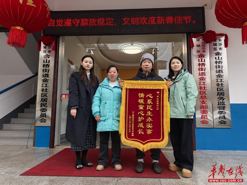 华声在线2月13日讯(通讯员 李玉洁 沈蓉)2月13日上午,湖南湘江新区金山桥街道社工站收到辖区困难家庭儿童及家长专程送来的锦旗,以最真挚的方式,感谢社工站长期以来对困境儿童的悉心关爱与精准帮扶。一面鲜红的锦旗,承载着群众的认可与谢意,既是荣誉,更是责任,充分彰显了社工站用心用情服务儿童成长的暖心成效。