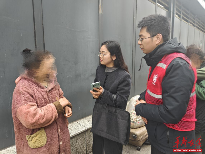 华声在线3月9日讯(通讯员 杨斯宇)3月5日,长沙市芙蓉区救助站工作人员在长沙火车站周边开展重点区域专项巡查时,于地铁口附近发现一名衣衫破旧脏污、长期露宿街头的妇女卢某,工作人员随即向其递上关怀并尝试询问情况,却遭到卢某的戒备与抗拒,救助工作一度遇阻。