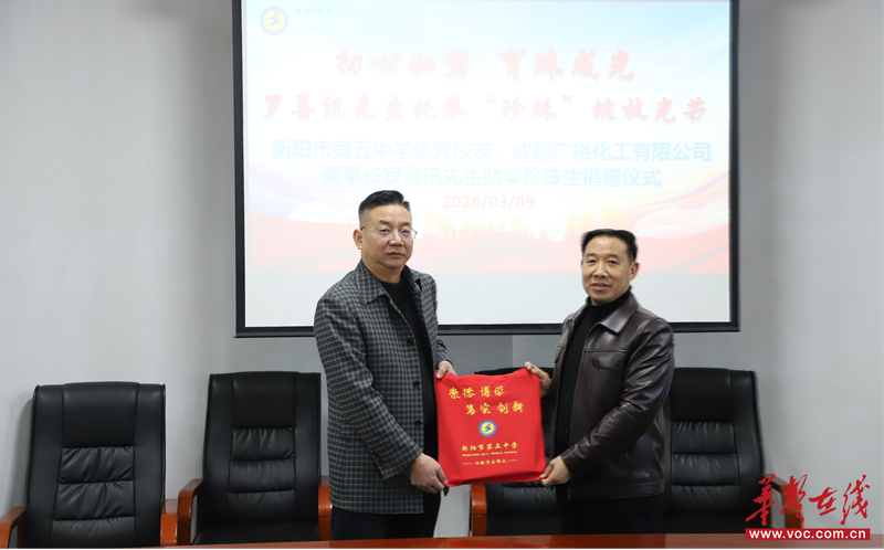 华声在线3月10日讯(通讯员 谢艳阳 万庆华)3月9日下午,衡阳市第五中学举行优秀校友罗喜讯先生爱心助学“珍珠生”捐赠仪式,为该校品学兼优、家庭困难的学生送上资助与关怀。