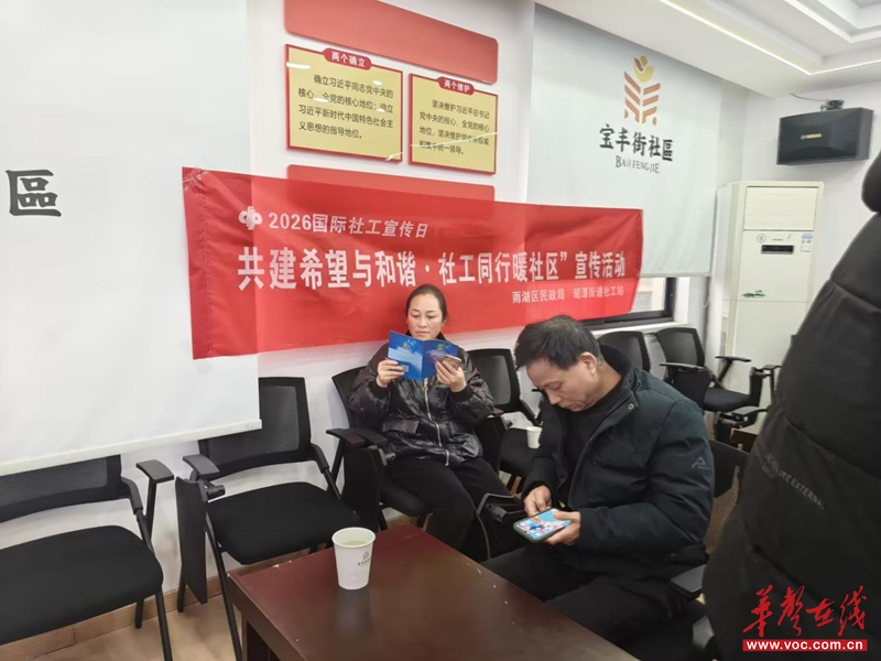 华声在线3月19日讯(通讯员 朱菁菁 胡馨月)近日,在湘潭市雨湖区民政局指导下,湘潭市雨湖区昭潭街道社工站联合宝丰街社区开展以“共建希望与和谐,社工同行暖社区”为主题的社工宣传及残疾人两项补贴政策宣传活动。活动特别面向社区内20名残疾人及其亲友,通过发放宣传资料与现场细致讲解相结合的方式,深入弘扬社工精神,提升惠民政策知晓率,营造扶残助残的良好社区氛围,将惠民政策的温暖切实送到服务对象手中。