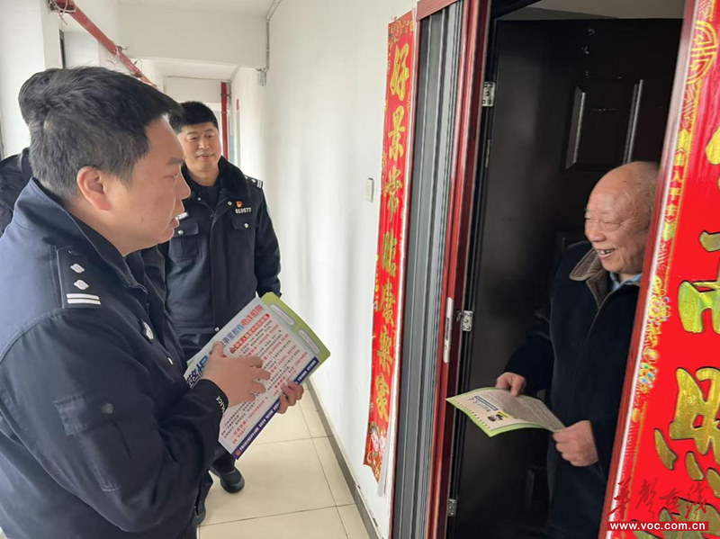 华声在线3月22日讯(通讯员 段钦瀚)为筑牢社区反诈安全防线,切实守护居民“钱袋子”,近日,长沙市公安局开福分局伍家岭派出所所长带队,联合长沙市开福区陡岭社区、小区物业,深入小区开展“敲门入户”反诈宣传行动,将反诈知识精准送到群众家门口。