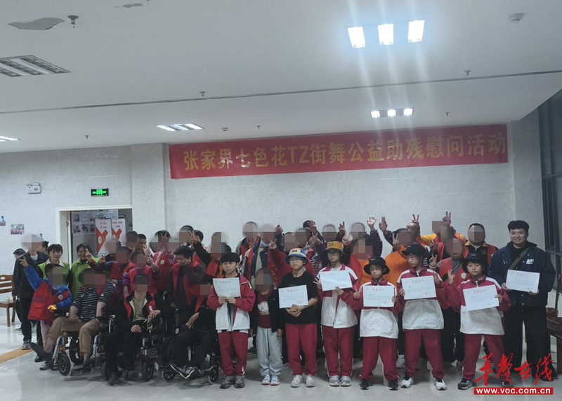 华声在线4月18日讯(通讯员 李贵南)近日,湖南省乐善社会工作发展中心邀请张家界七色花TZ街舞团,走进张家界市残疾人托养中心,开展“街舞传暖,爱心助残”文艺活动,为中心托养对象送去满满的欢乐与贴心陪伴。七色花TZ街舞团的舞者们以灵动舞姿传递青春正能量,用实际行动践行扶残助残的传统美德,凝聚起关爱残障群体的温暖力量。